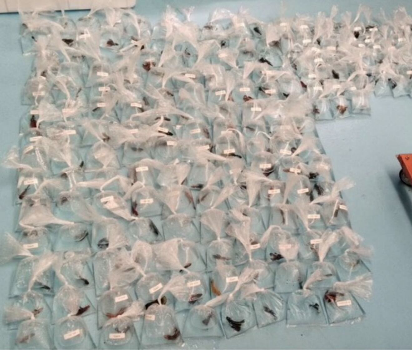 さらに輸送の専門知識を持つスタッフが、一匹ずつ状態を確認しながら袋詰め。